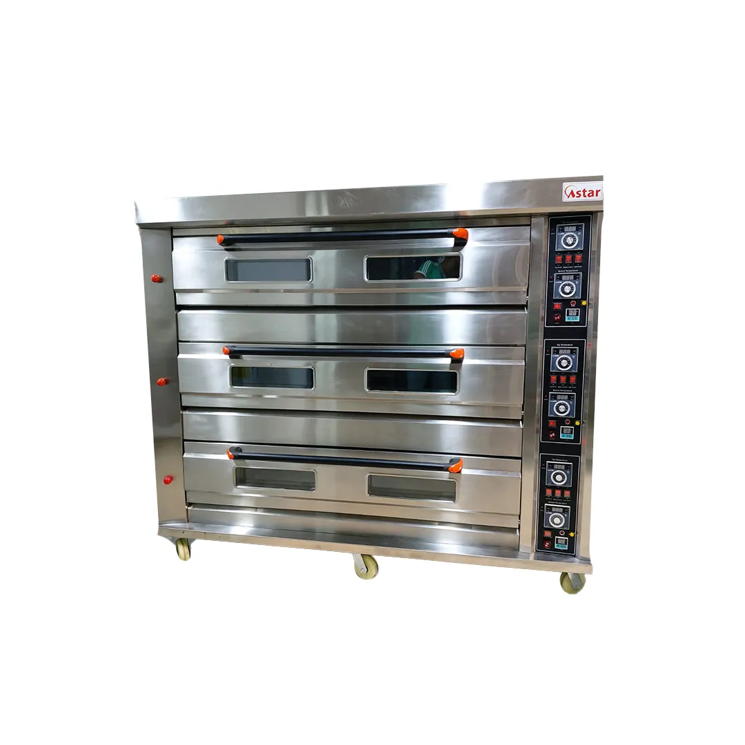Horno de gas de 3 pisos y 9 bandejas con piedra con función de vapor